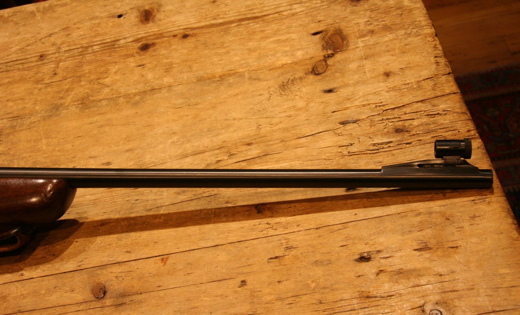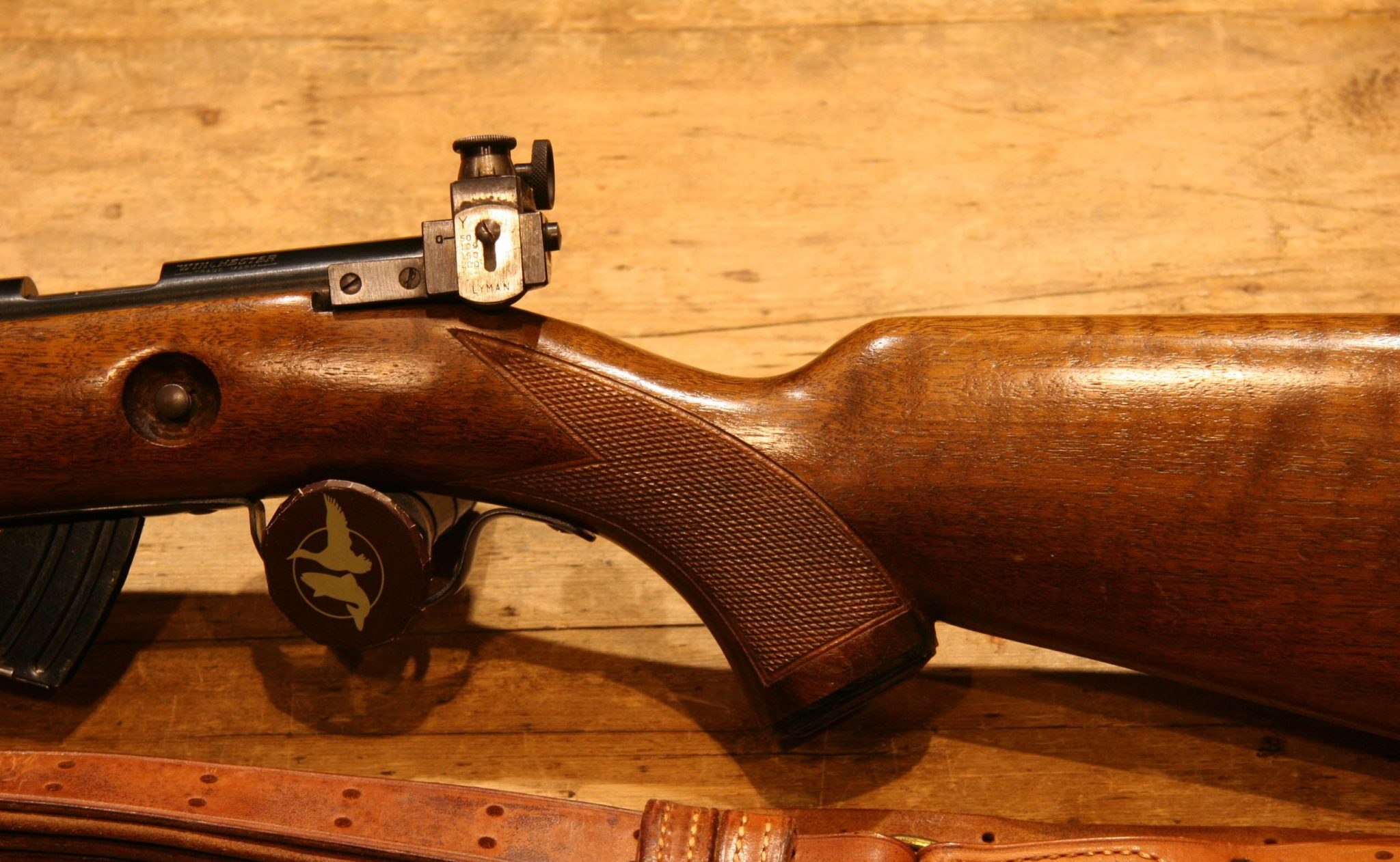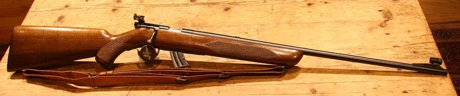 Winchester Model 75 Sporter bolt-action .22 Long Rifle. 24″ tapered barrel. Stamped Sporting in front of magwell. Includes 10-rd original mag. Checkered walnut stock. Special ordered with Lyman target sights! This 75 shows some light handling/safe marks to the wood. Bluing are bore are immaculate. Includes an older Boyt leather sling. The buttplate is stock but the name HALL was engraved on it and in an excellent condition